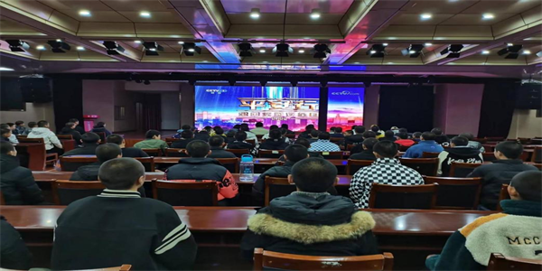 晚上8时,全校学生在军体教员的带领下进入学校法治大礼堂,在校值班教职工在副校长王斌的带领下进入大礼堂,朱世文主任放映CCTV-12频道平安行2022的重播。