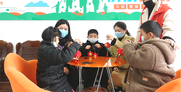 志愿者陪伴未成年人做手工。图片来源:常德文明网