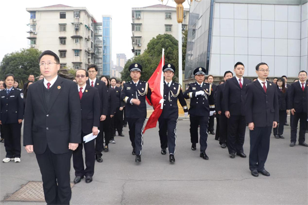 近日,汉寿县人民检察院举行升旗仪式,全体检察干警参加。仪式由党组副书记、副检察长谢永远主持。国旗伴随着国歌冉冉升起,全体干警对国旗行注目礼。
