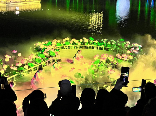 “看了首演,非常震撼”“舞台很漂亮”“内容精彩,值得一看”……3月5日20时许,大型奇幻光影水秀《柳叶船说》在柳叶湖渔歌艺术营地的首演结束后,热情的观众立即在朋友圈、抖音等社交平台上传了视频、图片,并留下了自己的观看感受为《柳叶船说》“点赞”。