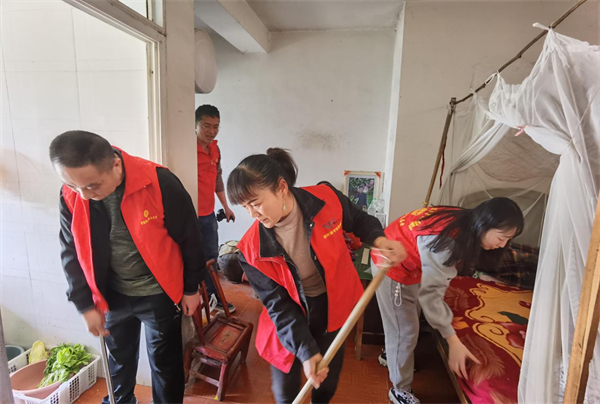 走访过程中,志愿者们为老人收拾屋子,希望她能有一个干净舒适的居住环境,有的拿扫帚和簸箕扫地、有的在床边整理被褥和衣服、有的帮老人收拾桌子、有的则同老人亲切交谈。老人脸上露出笑容,再三表示感谢。