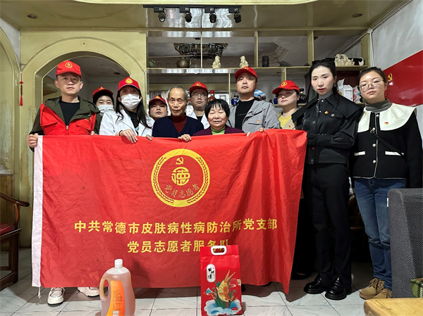 困难老党员张四妹与老伴长期借住在滨湖社区的侄女家中,无经济来源,两老年老体弱,身患心脏病、糖尿病等多种疾病,需要长期服用药物维持治疗。市皮防所党员志愿者来到她家,开展送医上门服务,根据两老的身体状况,志愿者们提供个性化的慢性病健康教育服务和指导,并为老年人送上慰问品。