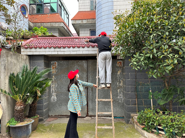 帮居民清理屋顶碎瓦片 图片来源:常德文明网